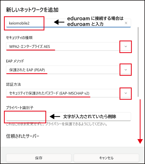 keiomobile2/eduroam へのパスワード接続